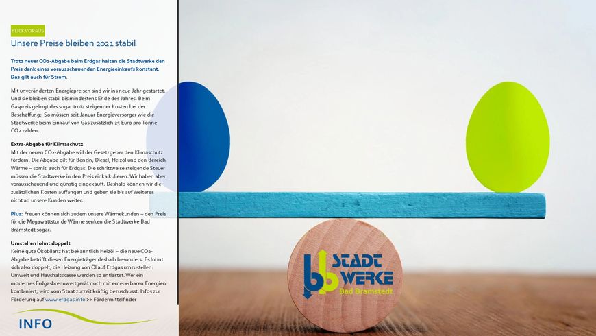 BLICK VORAUS Unsere Preise bleiben 2021 stabil