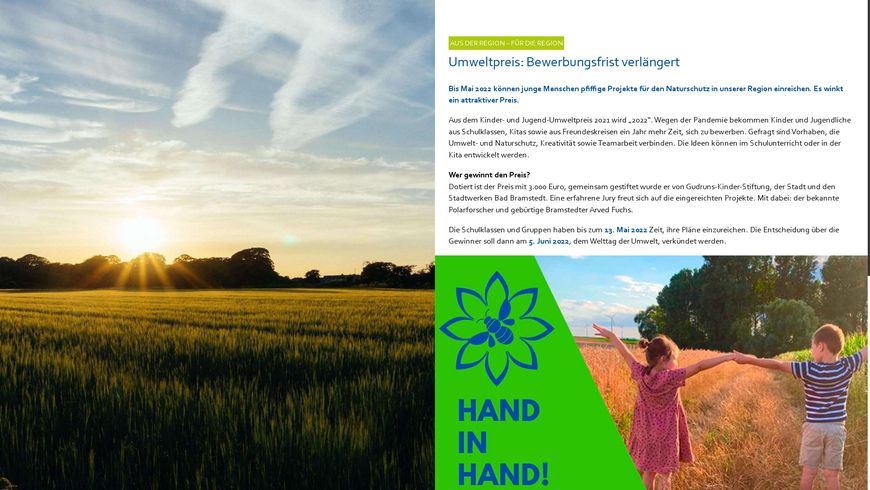 AUS DER REGION – FÜR DIE REGION Umweltpreis: Bewerbungsfrist verlängert