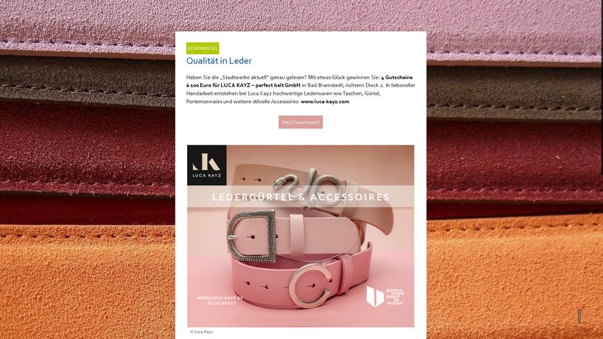 Konzept, Text und Gestaltung pr/omotion GmbH | Bildnachweis: ad Photographie, bertys30/magele-picture/AdobeStock, Robert Kneschke/AdobeStock/BHW Bausparkasse, Autohaus Ungermann, LUCA KAYZ, pd-f.de/Luka Gorjup, SHeff-Z, Tourismusbüro Bad Bramstedt, www.flyer-bikes.com/pd-f, Zukunft Gas, 123rf | Umsetzung Digitalmagazin Novamag GmbH