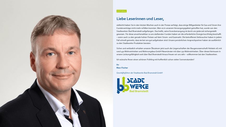 Verantwortlich für den Inhalt i. S. d. § 55 Abs. 2 RStV: Marc Fischer, Stadtwerke Bad Bramstedt GmbH (Anschrift siehe oben)