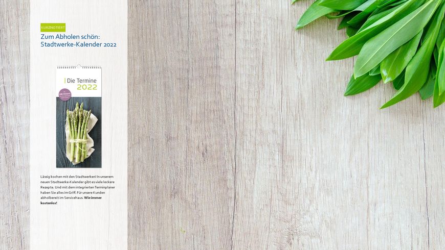 KURZNOTIERT Zum Abholen schön: Stadtwerke-Kalender 2022