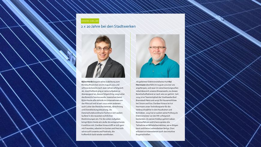 UNSERE JUBILARE 2 x 20 Jahre bei den Stadtwerken